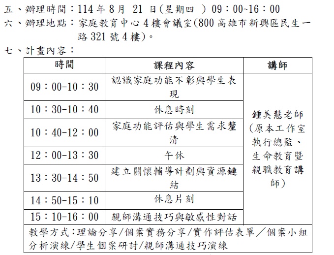 三、研習時間:114年8月21日(星期四)上午9時至下午4時。