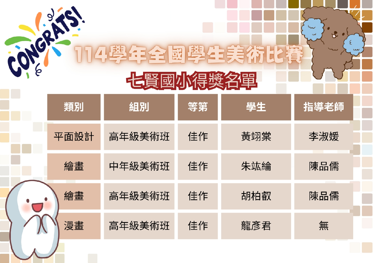 七賢國小114年全國學生美術比賽得獎名單